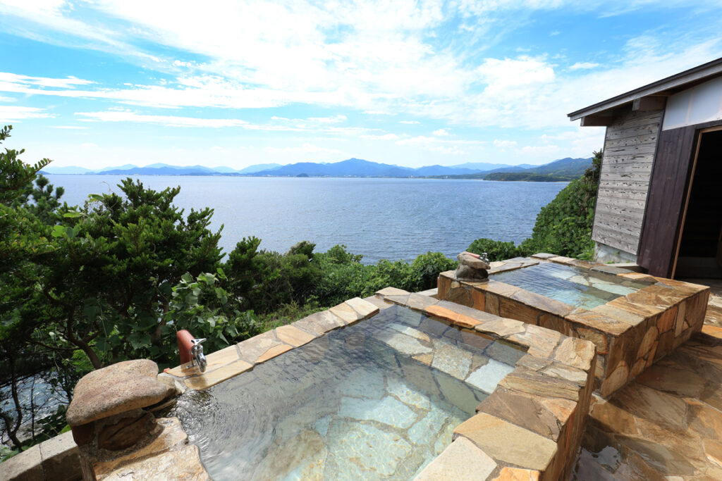 立地が圧巻!日本海の絶景を一望できる、北長門国定公園の高台に位置するリトリートホテル「悠久の季」。 大浴場で、その美しい景色を眺めながら至福の時をお過ごしください。