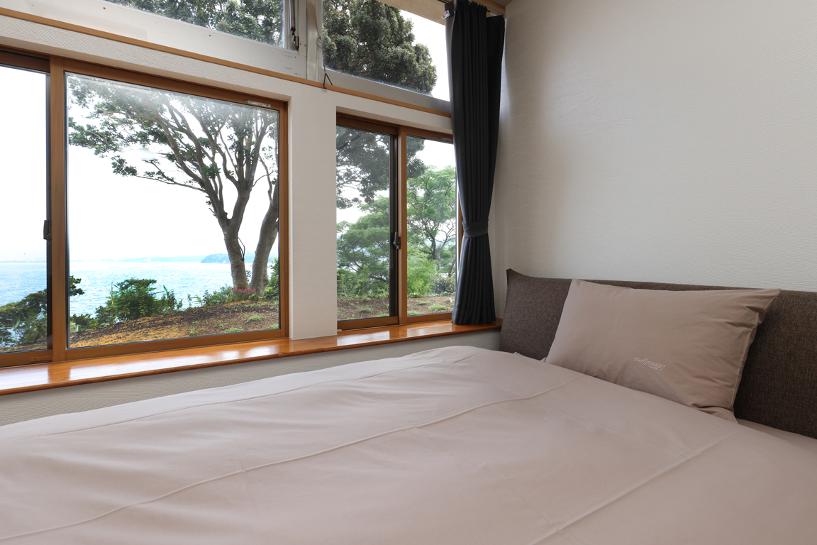 お部屋入口の落ち着いた空間を抜けると、そこには広がるパノラマビュー。 日本の渚百景に選ばれた青海島を一望。 夜は満点の星空、朝は美しい朝日を楽しみながらゆったりとくつろぎのひとときを。